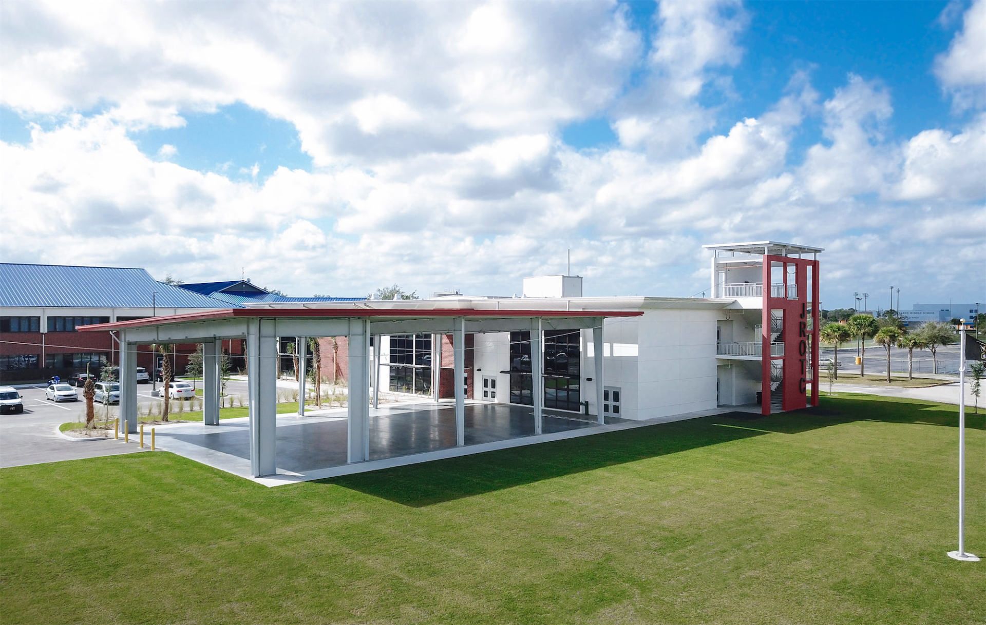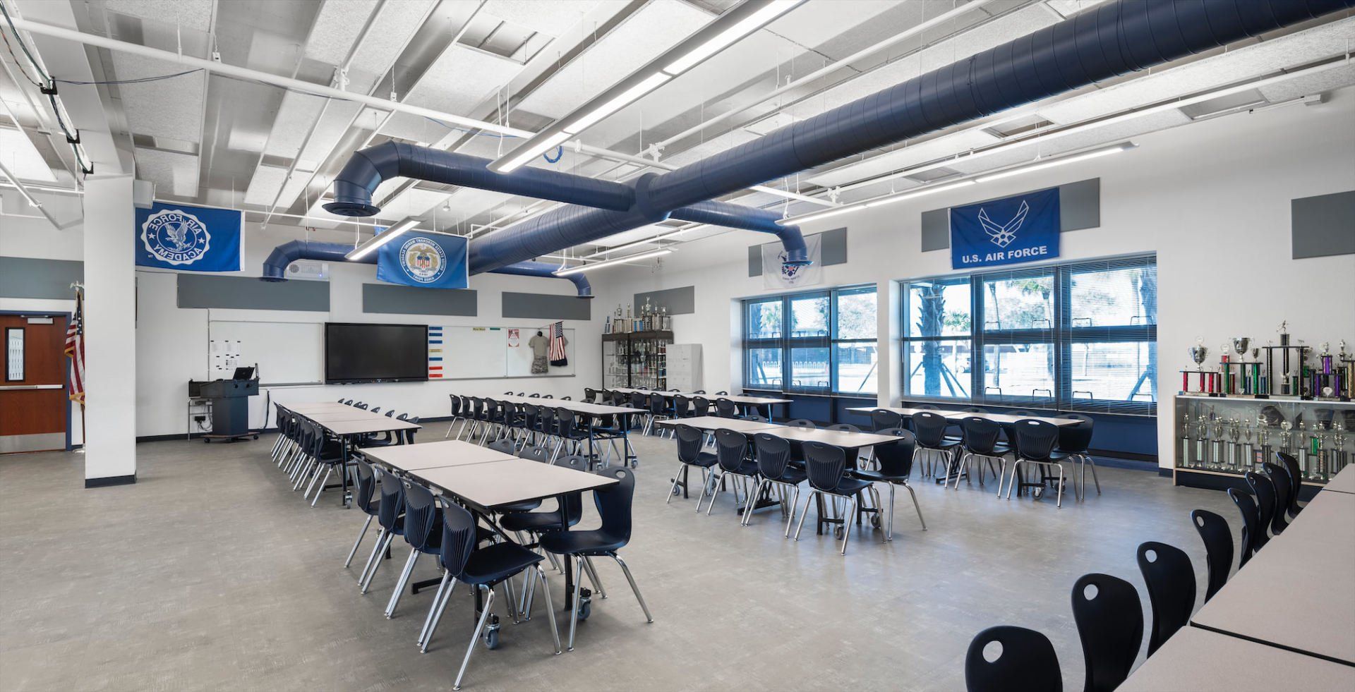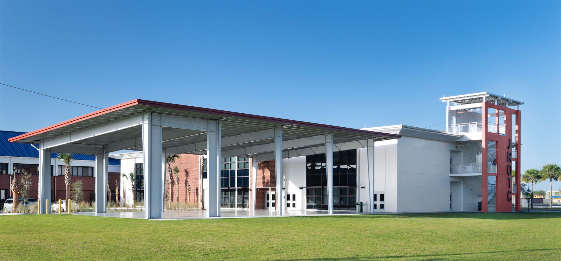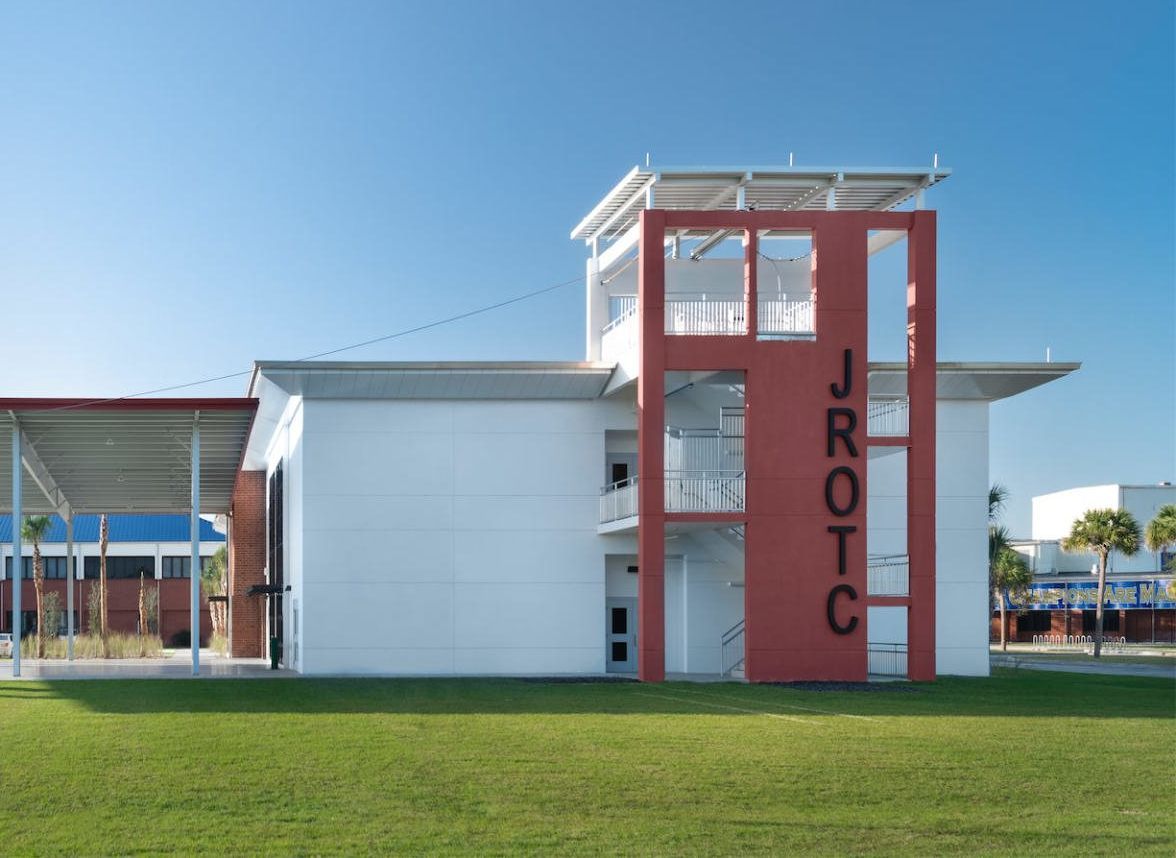 Given that Lehigh High School has the largest JROTC Program in the nation, RG Architects, P.A. was able to relocate the existing program’s multipurpose spaces and related classrooms, consolidating them into an “Academy” setting at the ground floor of the new building. RG Architects worked together with the owner and end-users to identify spaces with low use and were converted into functional spaces for students, which resulted in additional 325 student stations.