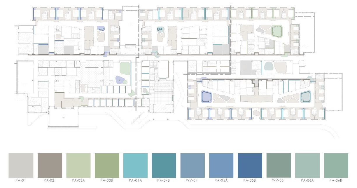 In this Behavioral Health Center, RG Architects team is incorporating biophilic features, warm colors, and appropriate flooring to benefit not only patients, but also staff, care providers, and visitors.